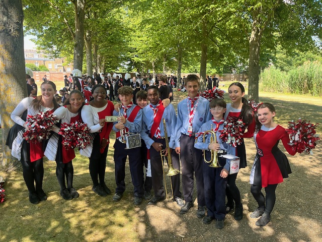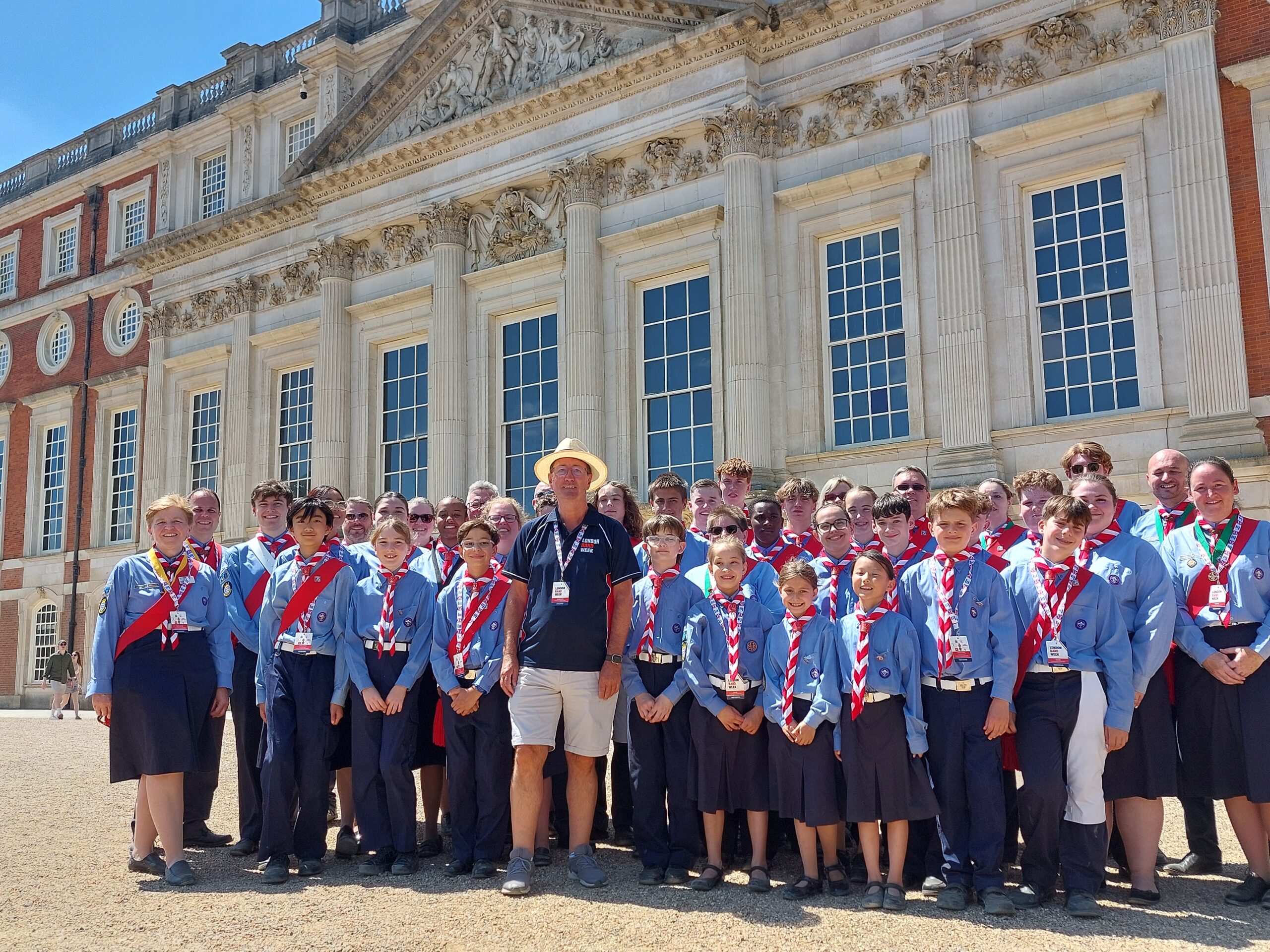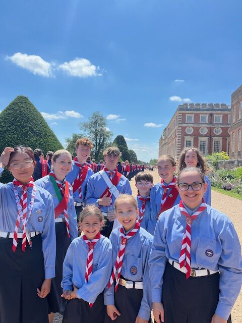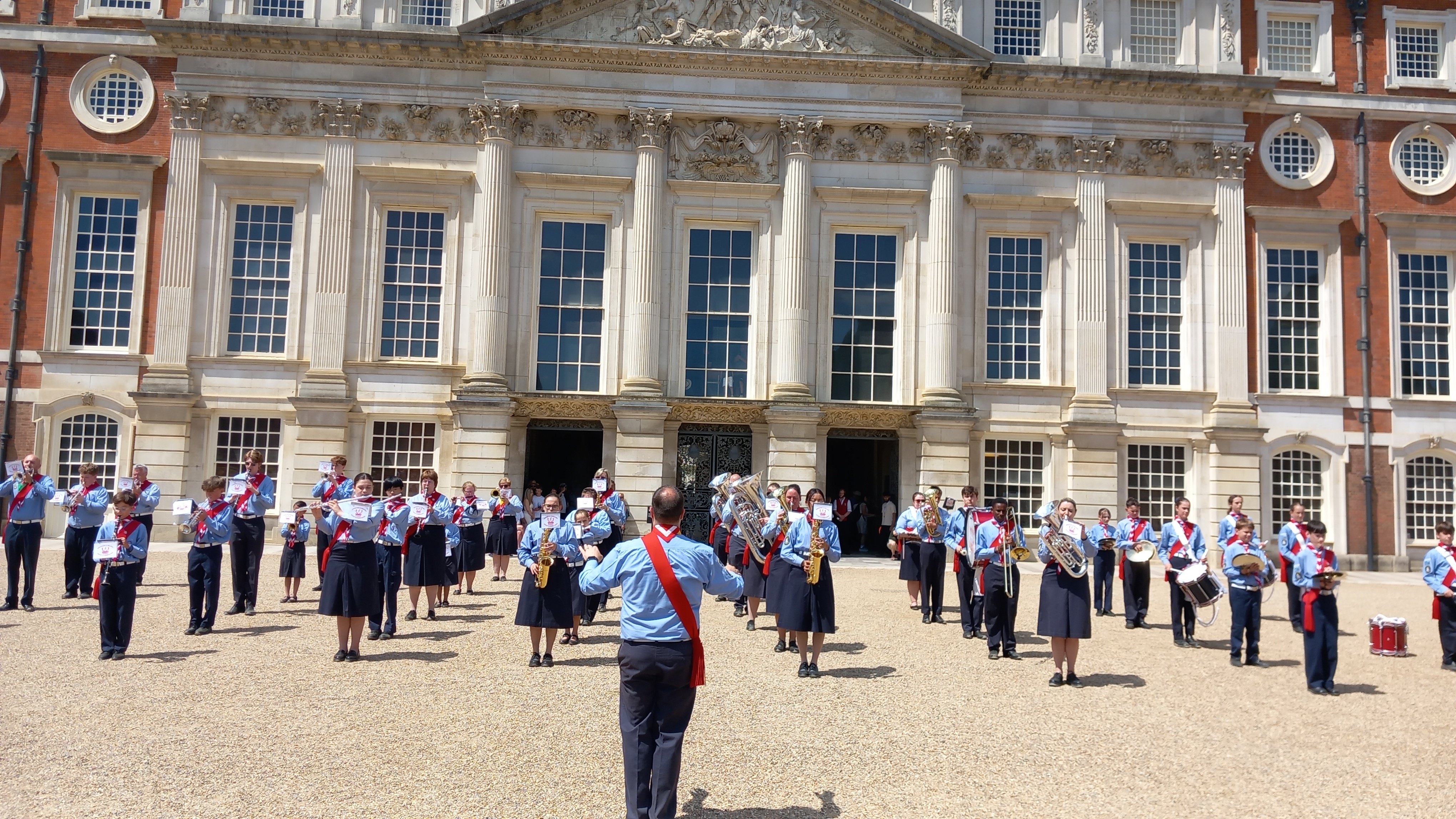 The Band was very proud to be asked to perform in the Annual Palace Parade Review, for London Band Week, at Hampton Court Palace in June 2025. K&M are the first Scout & Guide Band to participate in London Band Week.