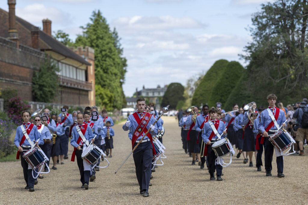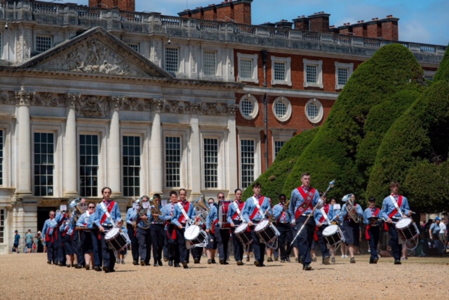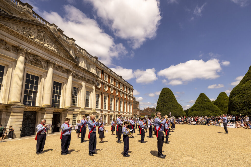 The Palace provided a brilliant backdrop for the six Marching Bands to showcase their talents. Two bands from the USA and four UK bands, including K&M, performed marches and static pieces for the audience in the palace gardens. Over 700 band members were involved in the event.