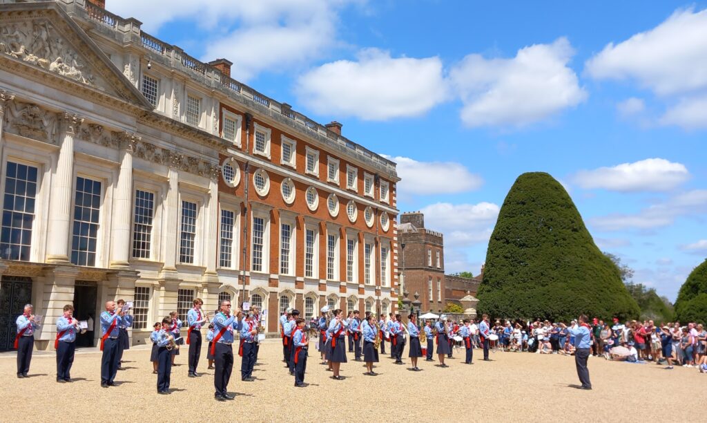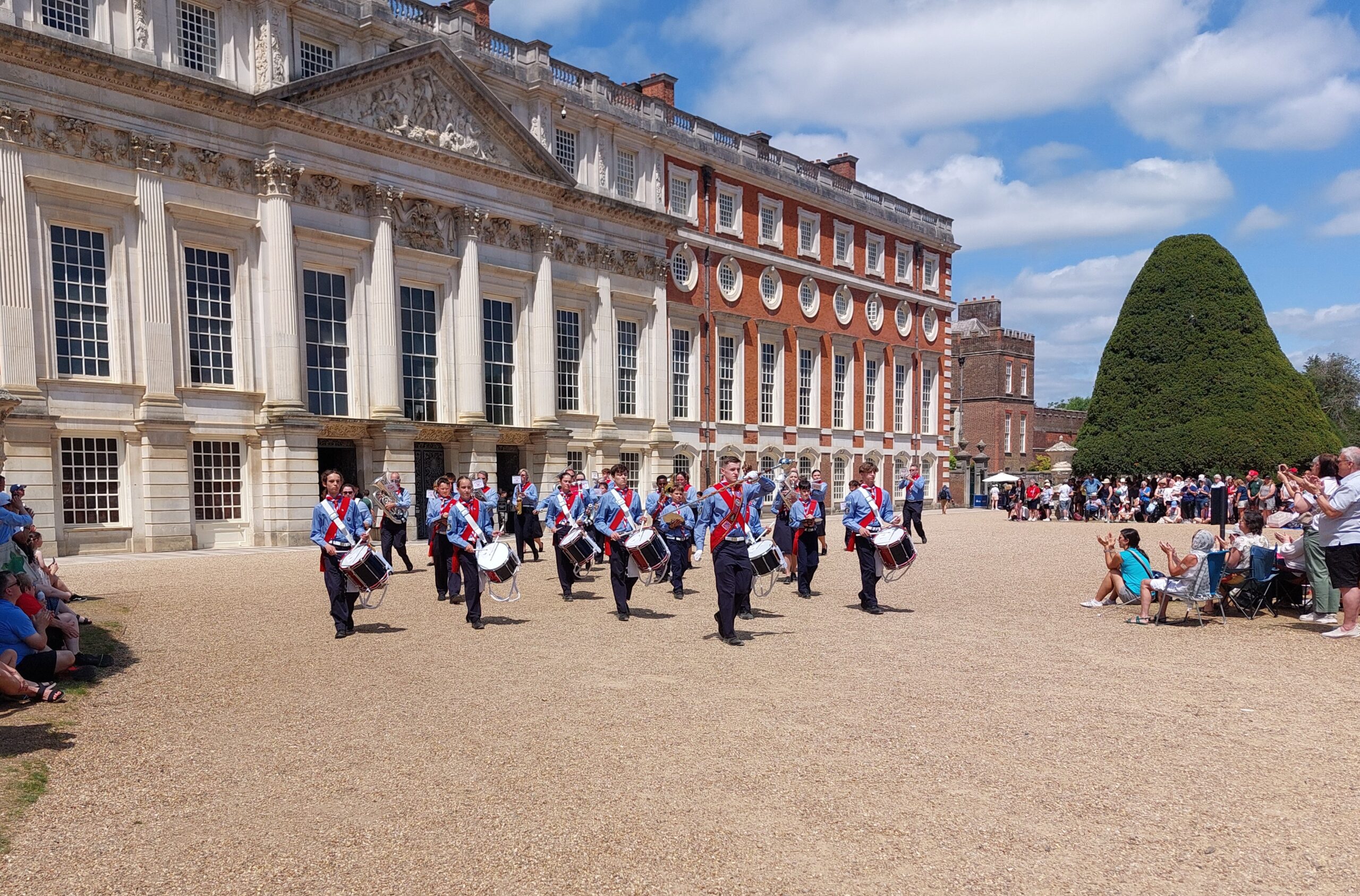 The Band was very proud to be asked to perform in the Annual Palace Parade Review, for London Band Week, at Hampton Court Palace in June 2025. K&M are the first Scout & Guide Band to participate in London Band Week.